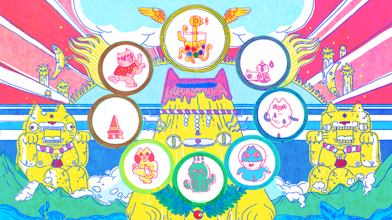 最終在火山口噴發的各色能量,集結成了彩虹,彩虹貓也就誕生了。