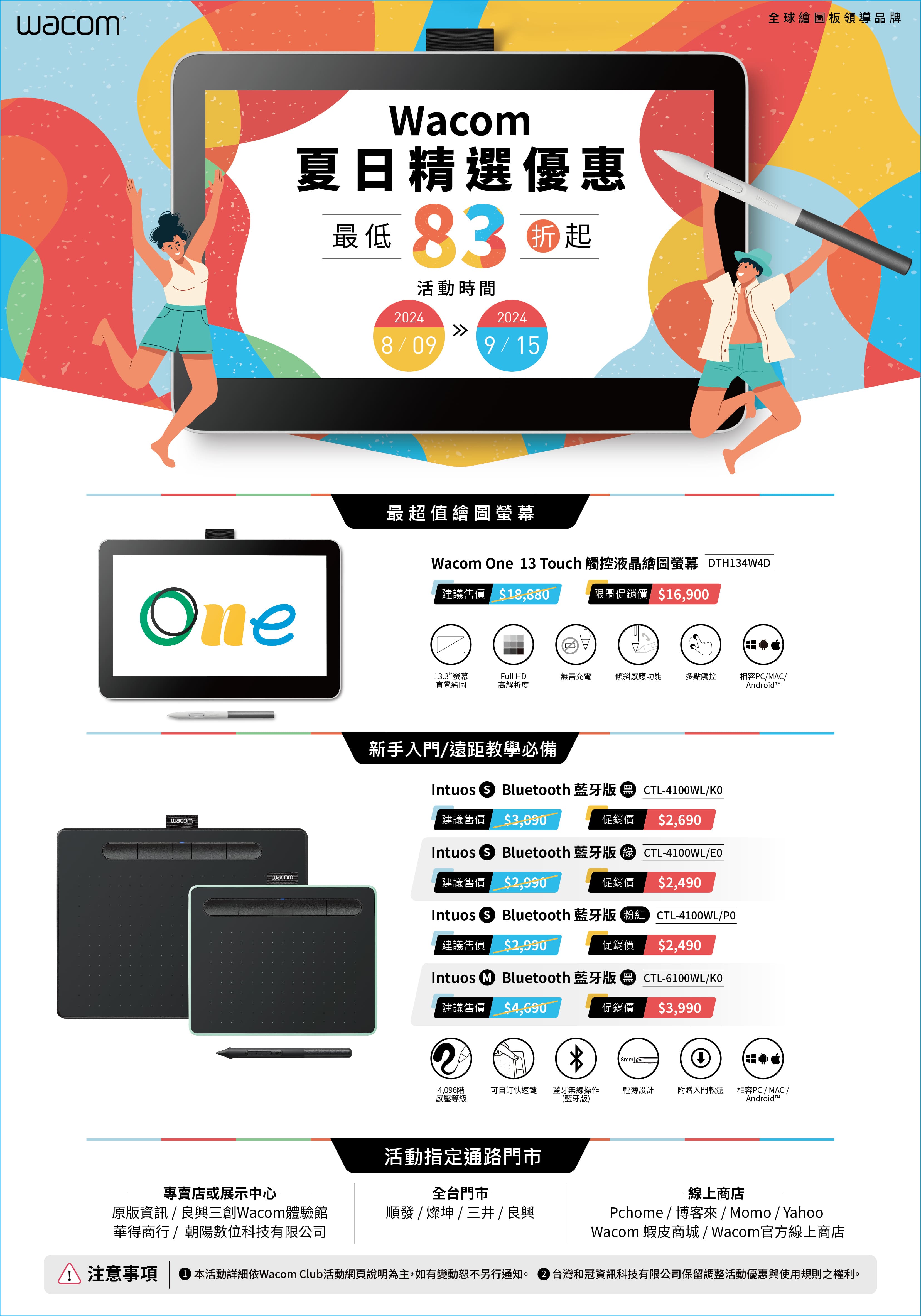▐ Wacom 夏日精選優惠 ▐ 眾多品項優惠中!入門款直降最低 83 折起