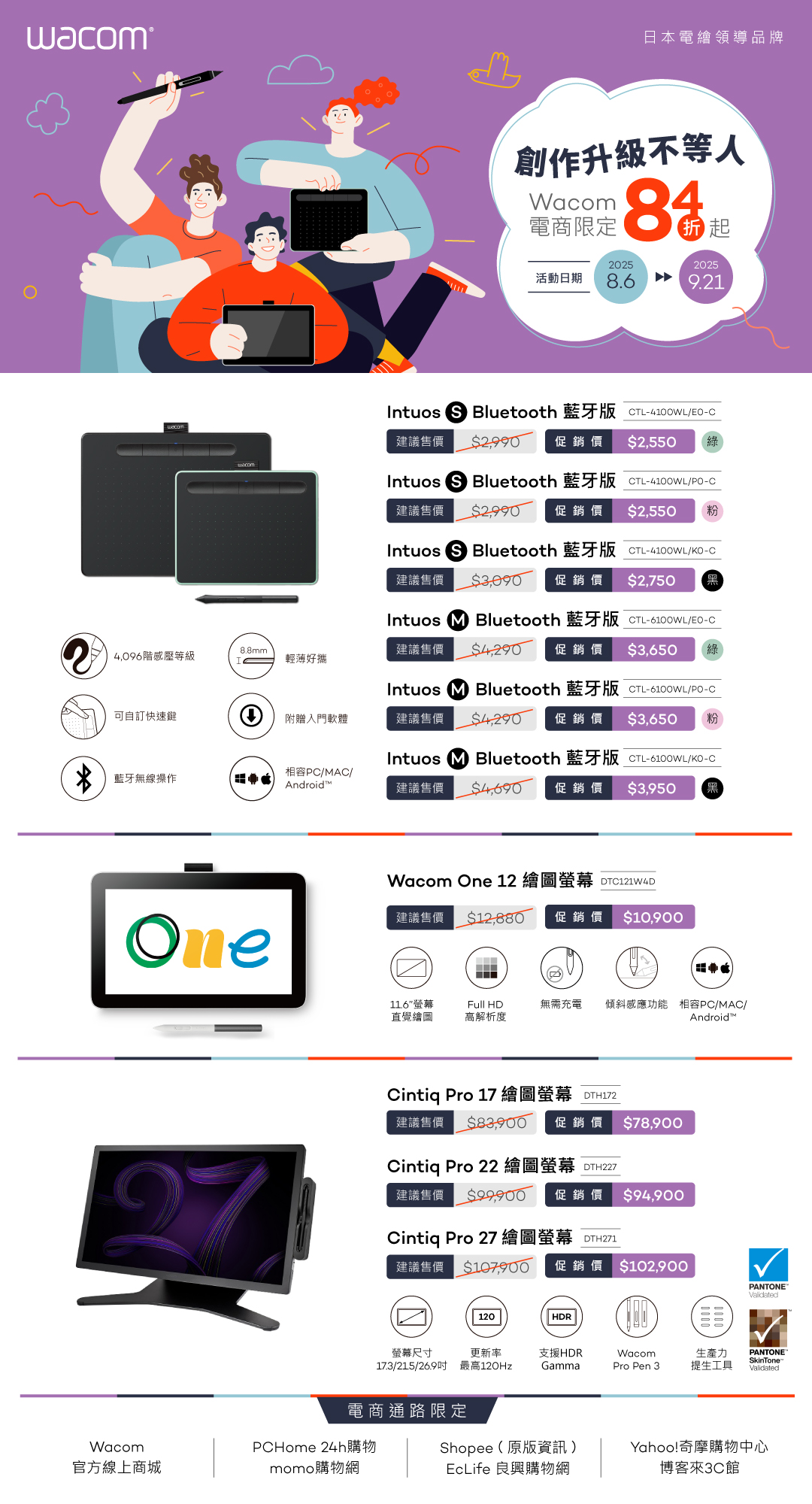 ▐ Wacom 創作升級不等人▐ 眾多品項優惠中,電商限定 84折起!